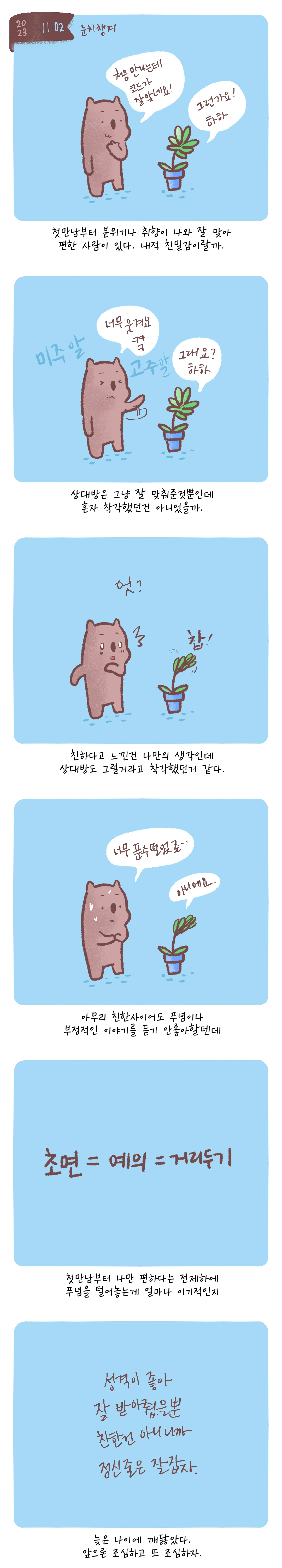 <섭섭하지 않은 쿼카>그림일기 웹툰 작가이자 운동을 좋아하는 일러스트레이터입니다. 따뜻한 그림을 그리고 싶습니다. 작가님의 글에 따뜻함을 더하고 싶으신분들은 제안해주세요.