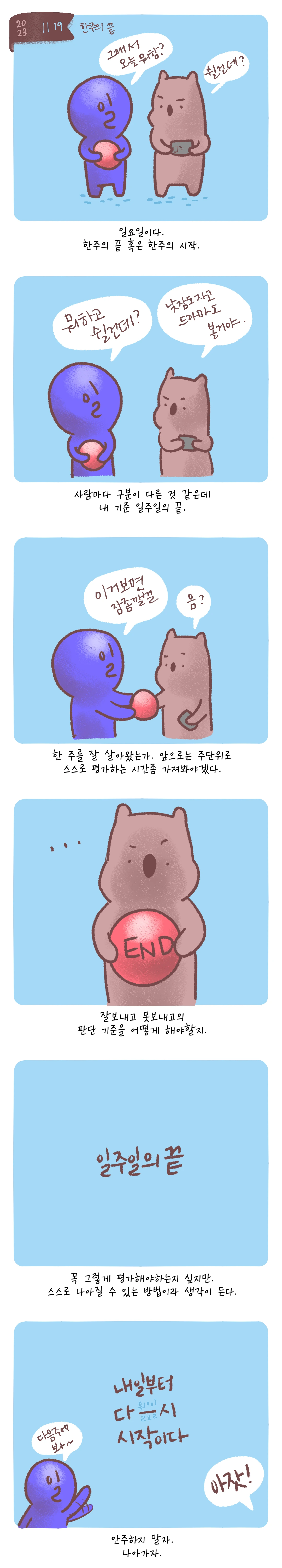 <섭섭하지 않은 쿼카>그림일기 웹툰 작가이자 운동을 좋아하는 일러스트레이터입니다. 따뜻한 그림을 그리고 싶습니다. 작가님의 글에 따뜻함을 더하고 싶으신분들은 제안해주세요.