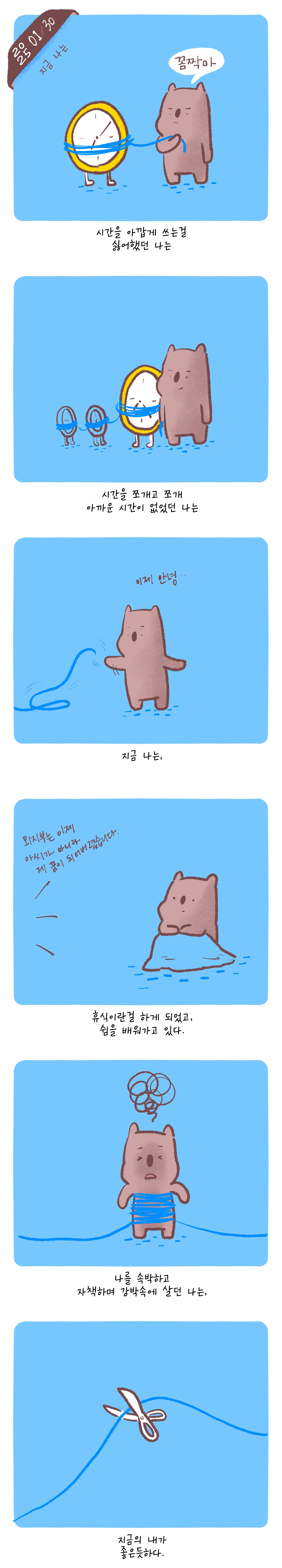 시간을 버리는 것과 같다며 압박과 자책을 하며