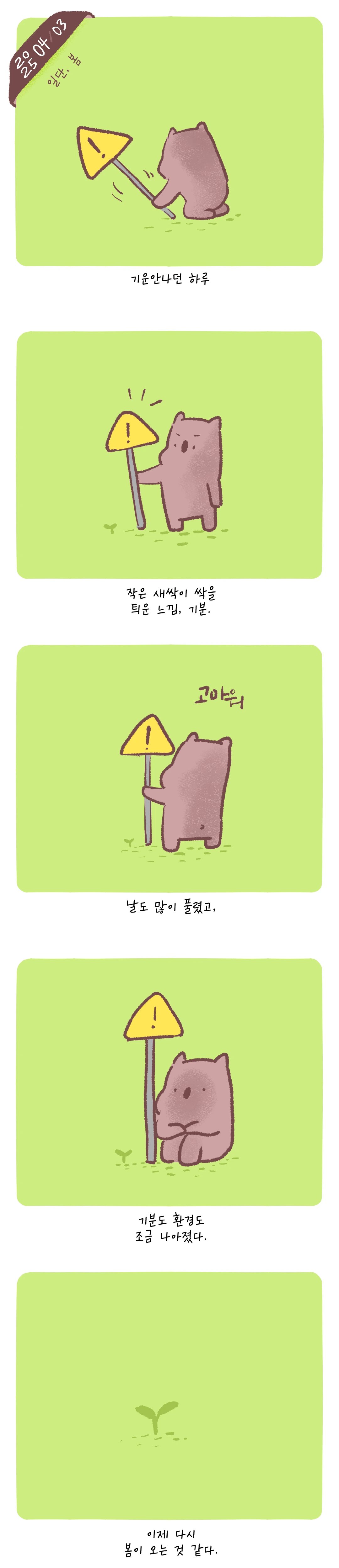 다시봄이 오는 것 같다.어제의 폭풍이다시금 지나가고지친 마음다친 마음회복하라고다시 의자에 앉아서 숨을 쉬는 기분.이제야봄이 오는 것 같다.