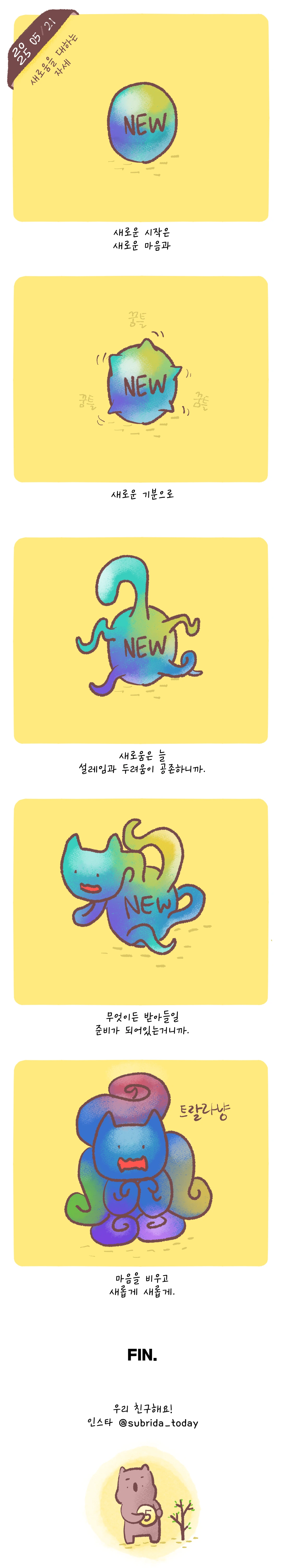 새로운 마음으로새롭게 새롭게즐겁게 즐겁게긍정적으로 긍정적으로.트랄랄라
