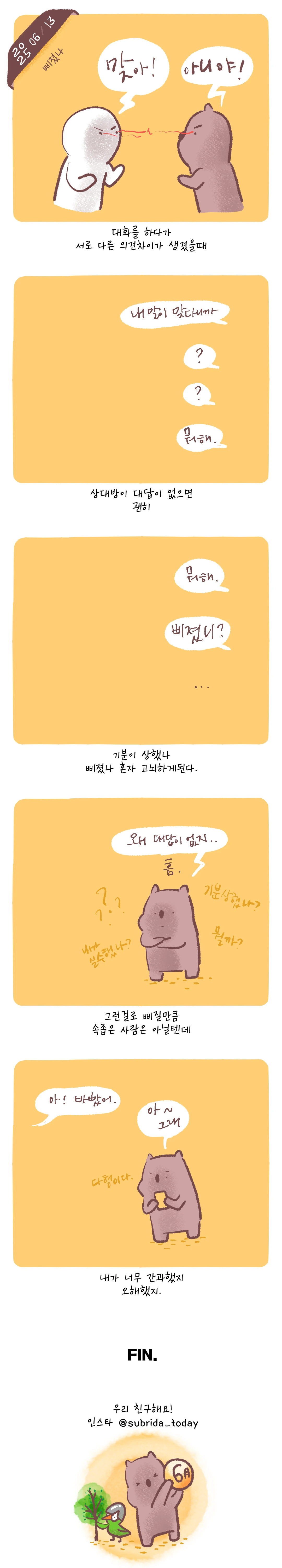 <섭섭하지 않은 쿼카>그림일기 웹툰 작가이자 운동을 좋아하는 일러스트레이터입니다. 따뜻한 그림을 그리고 싶습니다. 작가님의 글에 따뜻함을 더하고 싶으신분들은 제안해주세요.