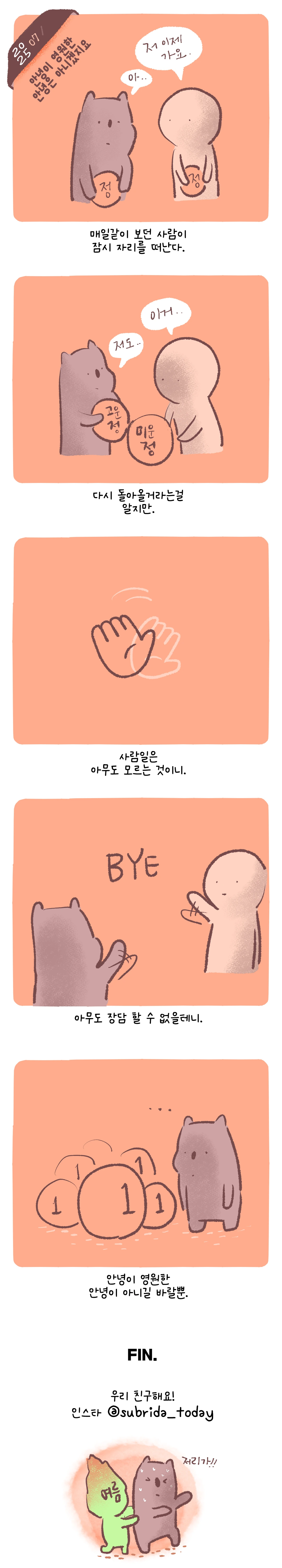 <섭섭하지 않은 쿼카>그림일기 웹툰 작가이자 운동을 좋아하는 일러스트레이터입니다. 따뜻한 그림을 그리고 싶습니다. 작가님의 글에 따뜻함을 더하고 싶으신분들은 제안해주세요.