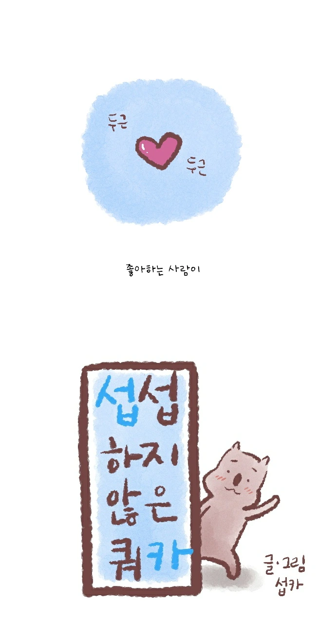 <섭섭하지 않은 쿼카>그림일기 웹툰 작가이자 운동을 좋아하는 일러스트레이터입니다. 따뜻한 그림을 그리고 싶습니다. 작가님의 글에 따뜻함을 더하고 싶으신분들은 제안해주세요.