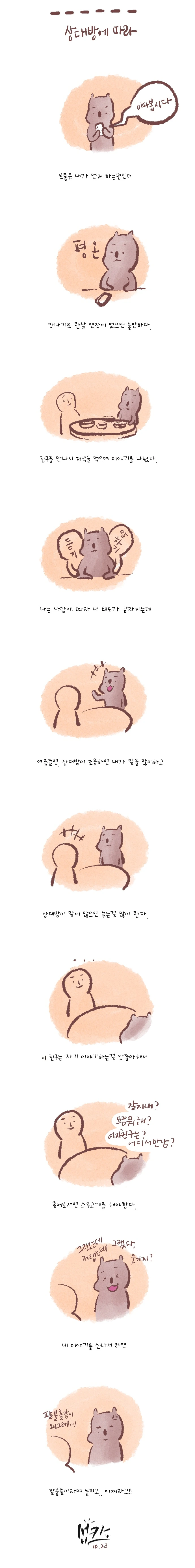 먼저 말을 안 걸면 조용한 친구라 최근에 있었던 일을 신나게 이야기했는데 팔불출이라는 이야기를 들었다.