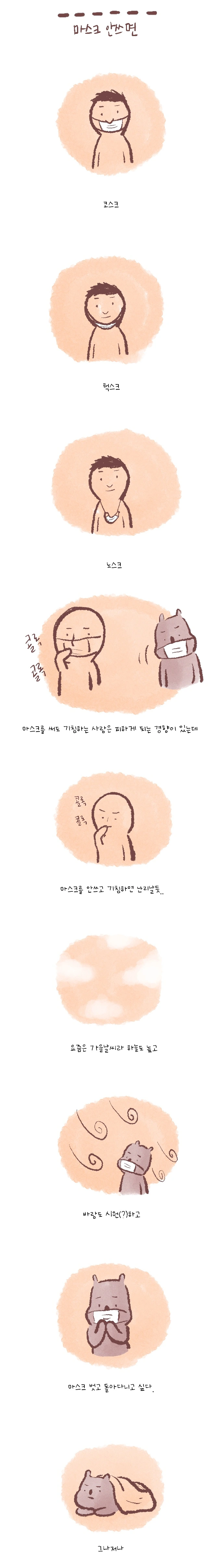 마스크 안쓰고 돌아다니는게 더 무서운 세상이라는게 무무 무서운 세상.