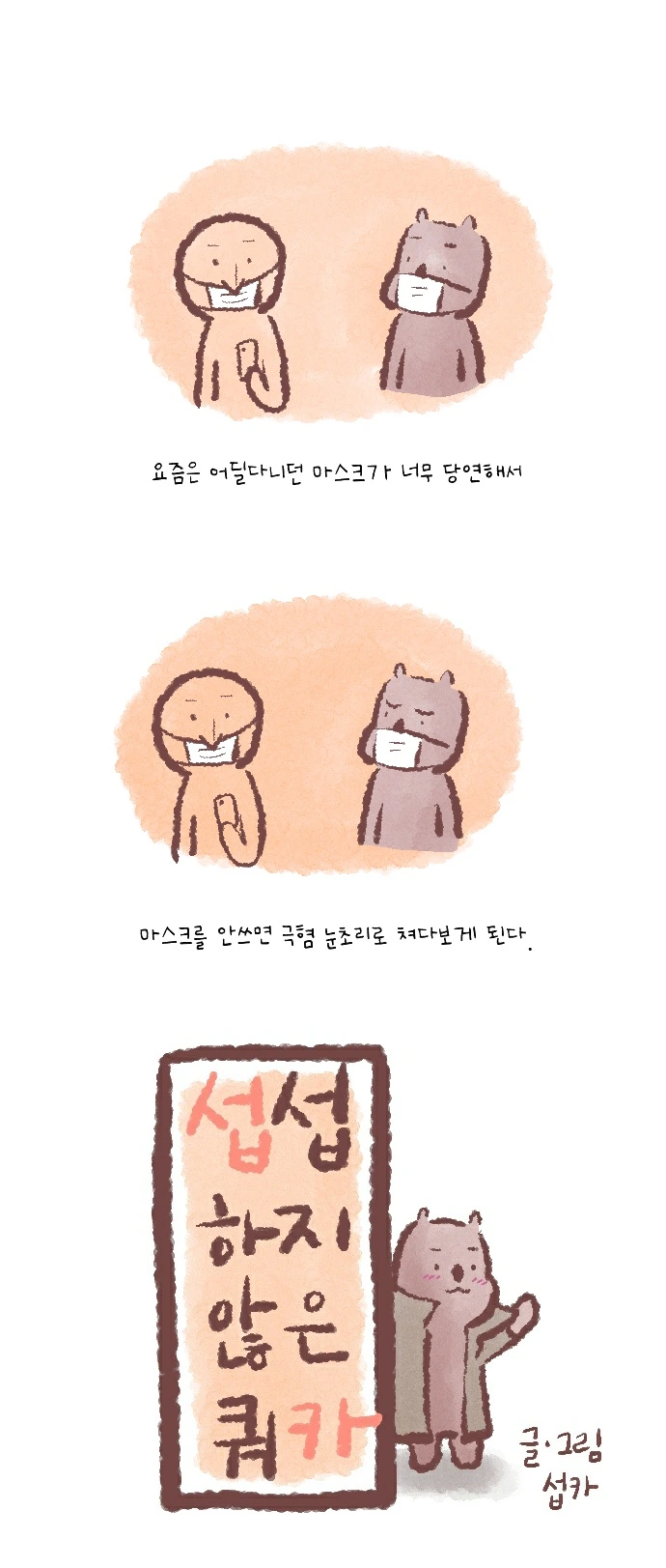 <섭섭하지 않은 쿼카>그림일기 웹툰 작가이자 운동을 좋아하는 일러스트레이터입니다. 따뜻한 그림을 그리고 싶습니다. 작가님의 글에 따뜻함을 더하고 싶으신분들은 제안해주세요.