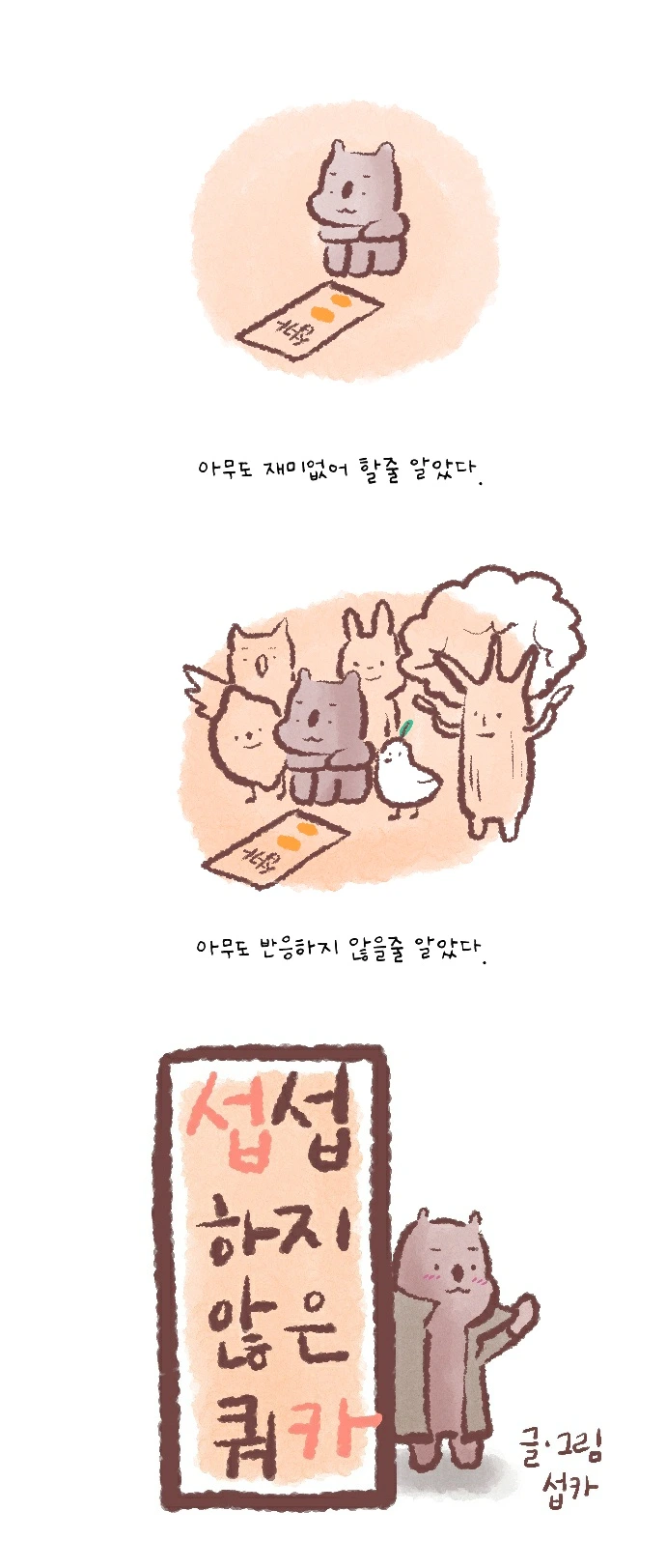<섭섭하지 않은 쿼카>그림일기 웹툰 작가이자 운동을 좋아하는 일러스트레이터입니다. 따뜻한 그림을 그리고 싶습니다. 작가님의 글에 따뜻함을 더하고 싶으신분들은 제안해주세요.