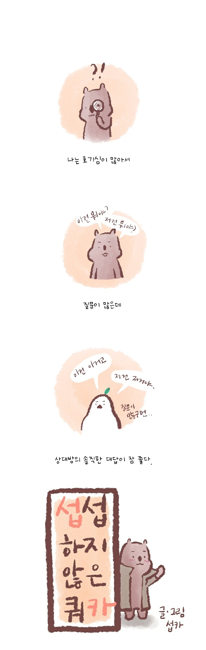 <섭섭하지 않은 쿼카>그림일기 웹툰 작가이자 운동을 좋아하는 일러스트레이터입니다. 따뜻한 그림을 그리고 싶습니다. 작가님의 글에 따뜻함을 더하고 싶으신분들은 제안해주세요.