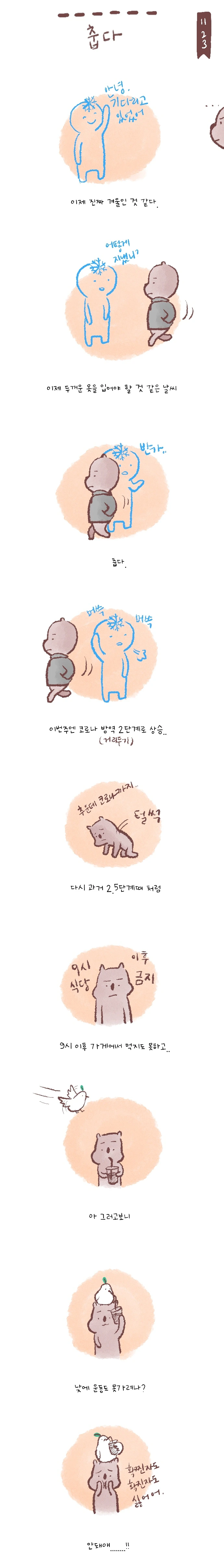주말에 비가 온 뒤로 갑자기 겨울이 찾아온 느낌.