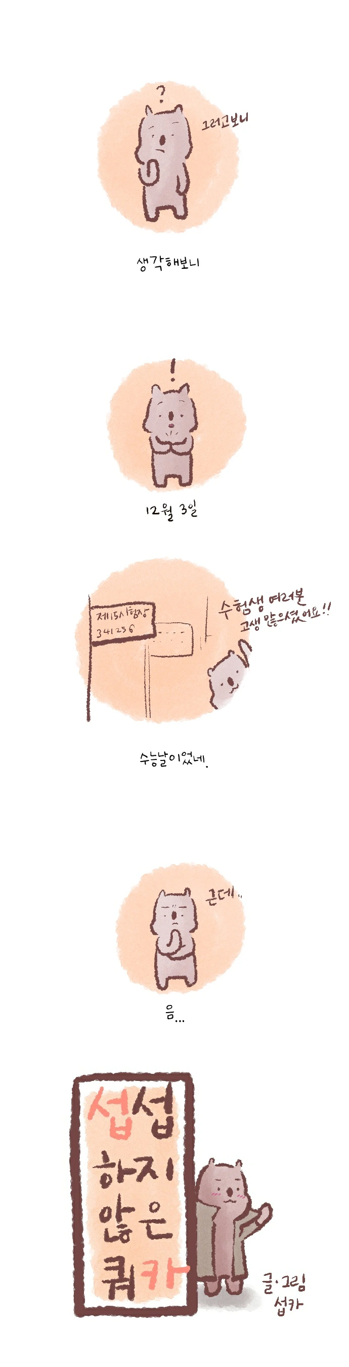 <섭섭하지 않은 쿼카>그림일기 웹툰 작가이자 운동을 좋아하는 일러스트레이터입니다. 따뜻한 그림을 그리고 싶습니다. 작가님의 글에 따뜻함을 더하고 싶으신분들은 제안해주세요.