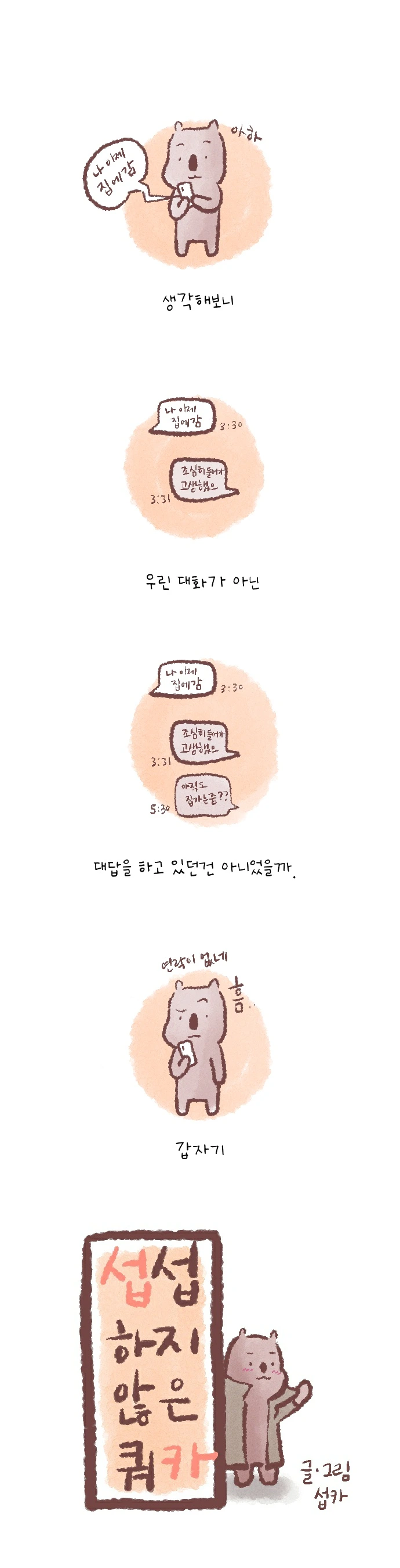 <섭섭하지 않은 쿼카>그림일기 웹툰 작가이자 운동을 좋아하는 일러스트레이터입니다. 따뜻한 그림을 그리고 싶습니다. 작가님의 글에 따뜻함을 더하고 싶으신분들은 제안해주세요.