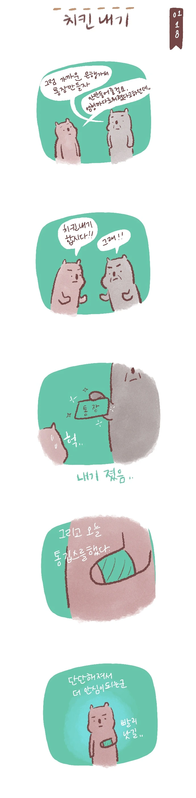 아침부터 통장을 만들어야 한다는 아버지와 실랑이를 하다가 치킨 내기를 했다.