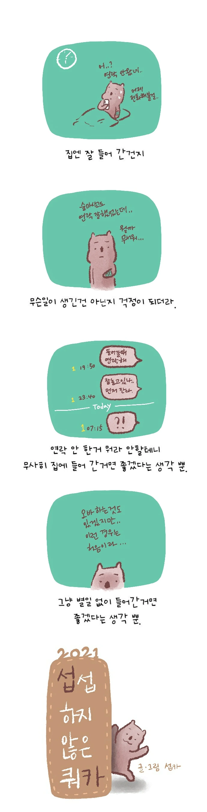 재미있게 노는 거 방해될까 봐문자만 남겨놨던 게 아쉽.속앓이하고 걱정하지 말고 전화를 해볼걸.연락 준다면 연락 줬었으니 그 말만 믿었는데..별일 없었다니 다행이다.
