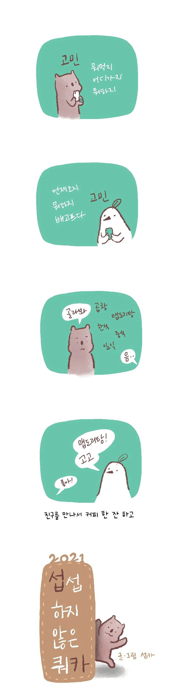 <섭섭하지 않은 쿼카>그림일기 웹툰 작가이자 운동을 좋아하는 일러스트레이터입니다. 따뜻한 그림을 그리고 싶습니다. 작가님의 글에 따뜻함을 더하고 싶으신분들은 제안해주세요.