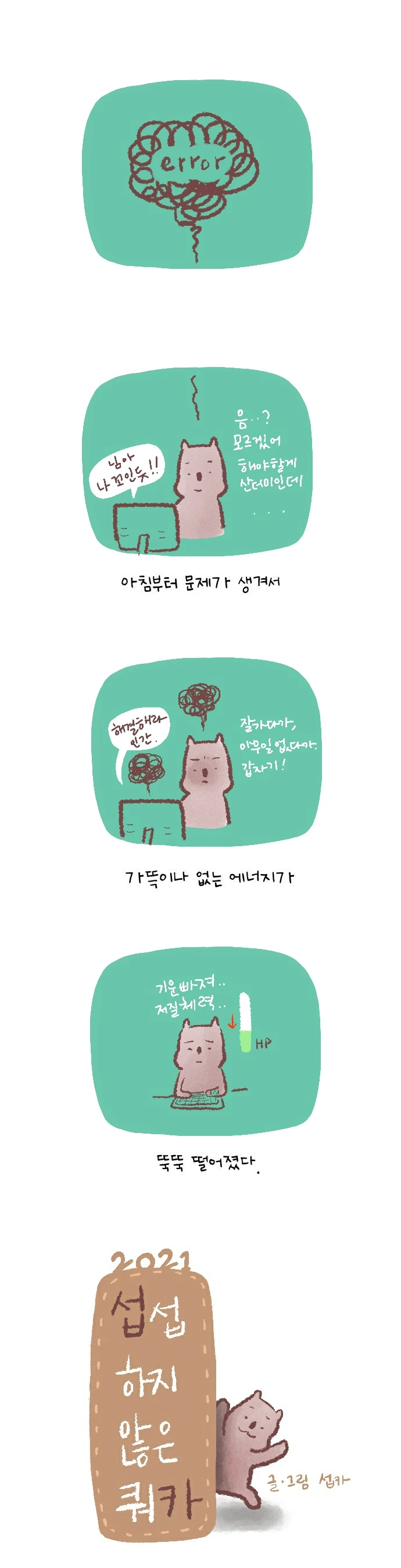 <섭섭하지 않은 쿼카>그림일기 웹툰 작가이자 운동을 좋아하는 일러스트레이터입니다. 따뜻한 그림을 그리고 싶습니다. 작가님의 글에 따뜻함을 더하고 싶으신분들은 제안해주세요.
