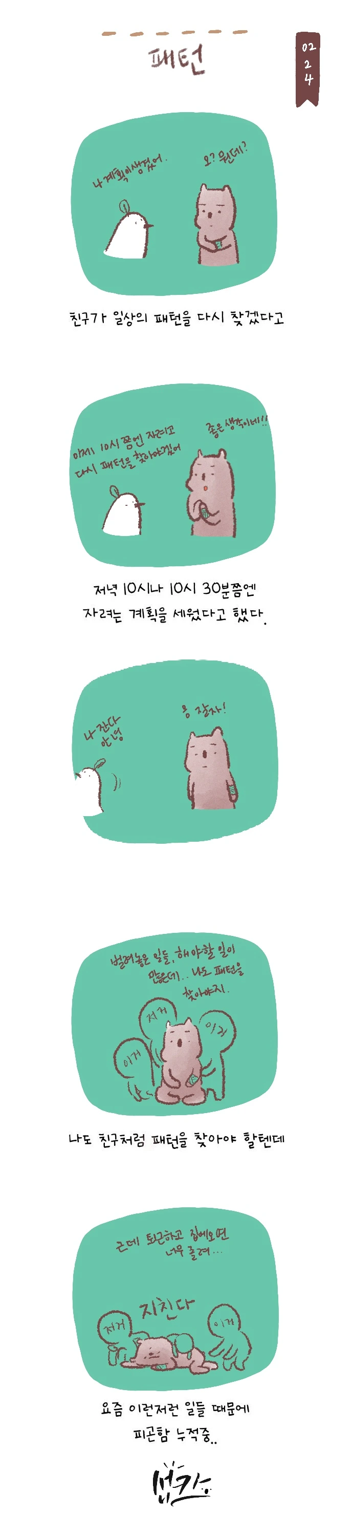 나도 저런 패턴을 만들어야지.이번 주는 탈이 많아서 그런가집에 와서 밥만 먹으면 졸려서 ㅠㅠㅠㅠ피곤하군 피곤해
