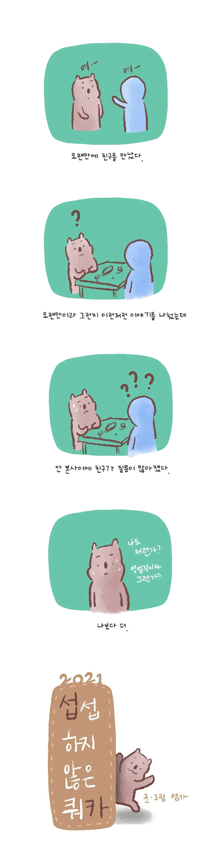 <섭섭하지 않은 쿼카>그림일기 웹툰 작가이자 운동을 좋아하는 일러스트레이터입니다. 따뜻한 그림을 그리고 싶습니다. 작가님의 글에 따뜻함을 더하고 싶으신분들은 제안해주세요.