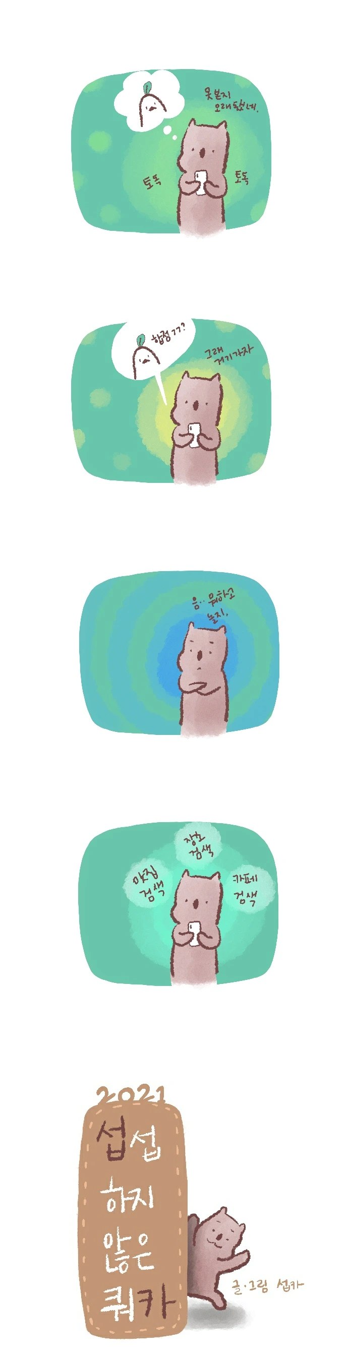 <섭섭하지 않은 쿼카>그림일기 웹툰 작가이자 운동을 좋아하는 일러스트레이터입니다. 따뜻한 그림을 그리고 싶습니다. 작가님의 글에 따뜻함을 더하고 싶으신분들은 제안해주세요.