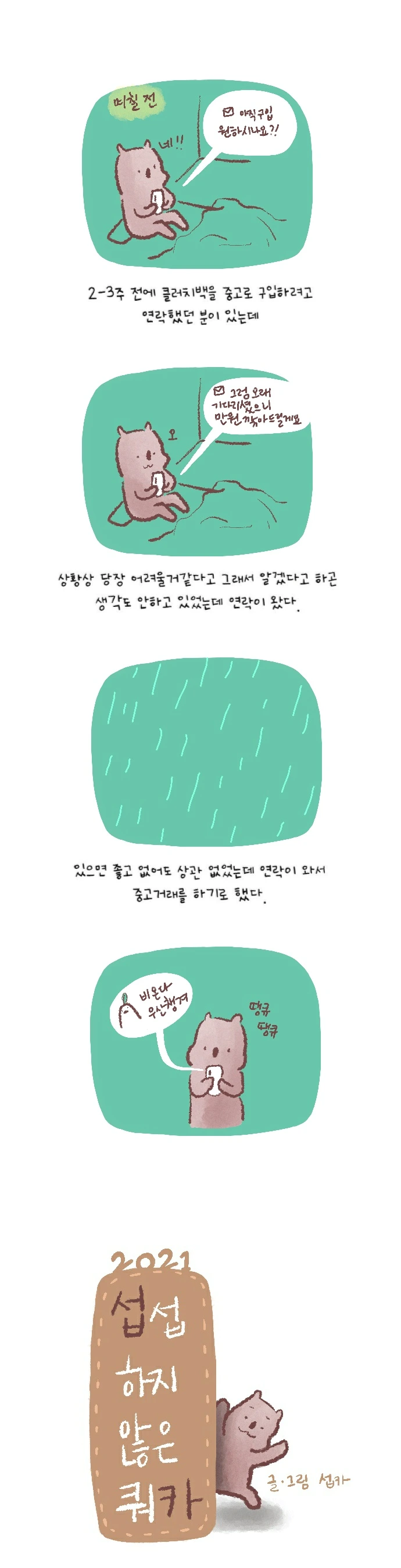 <섭섭하지 않은 쿼카>그림일기 웹툰 작가이자 운동을 좋아하는 일러스트레이터입니다. 따뜻한 그림을 그리고 싶습니다. 작가님의 글에 따뜻함을 더하고 싶으신분들은 제안해주세요.