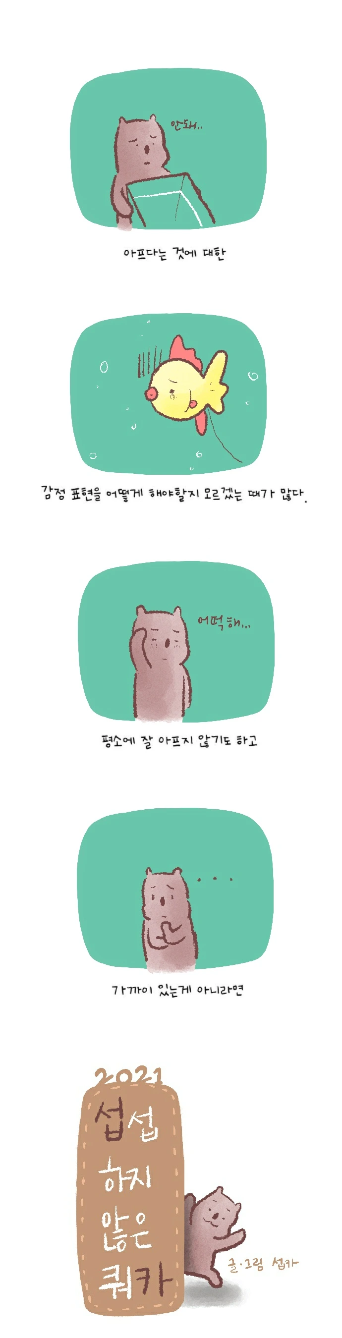 <섭섭하지 않은 쿼카>그림일기 웹툰 작가이자 운동을 좋아하는 일러스트레이터입니다. 따뜻한 그림을 그리고 싶습니다. 작가님의 글에 따뜻함을 더하고 싶으신분들은 제안해주세요.