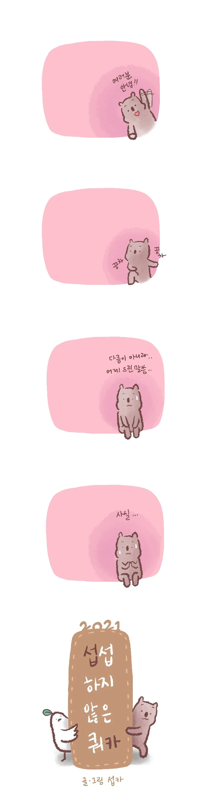 <섭섭하지 않은 쿼카>그림일기 웹툰 작가이자 운동을 좋아하는 일러스트레이터입니다. 따뜻한 그림을 그리고 싶습니다. 작가님의 글에 따뜻함을 더하고 싶으신분들은 제안해주세요.