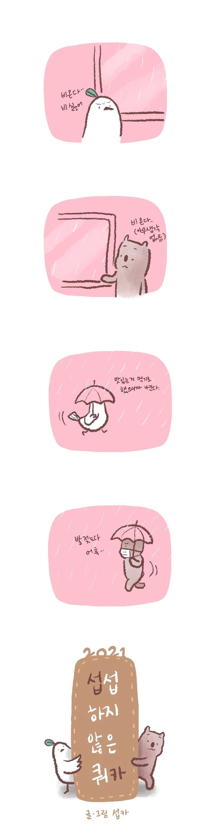 <섭섭하지 않은 쿼카>그림일기 웹툰 작가이자 운동을 좋아하는 일러스트레이터입니다. 따뜻한 그림을 그리고 싶습니다. 작가님의 글에 따뜻함을 더하고 싶으신분들은 제안해주세요.