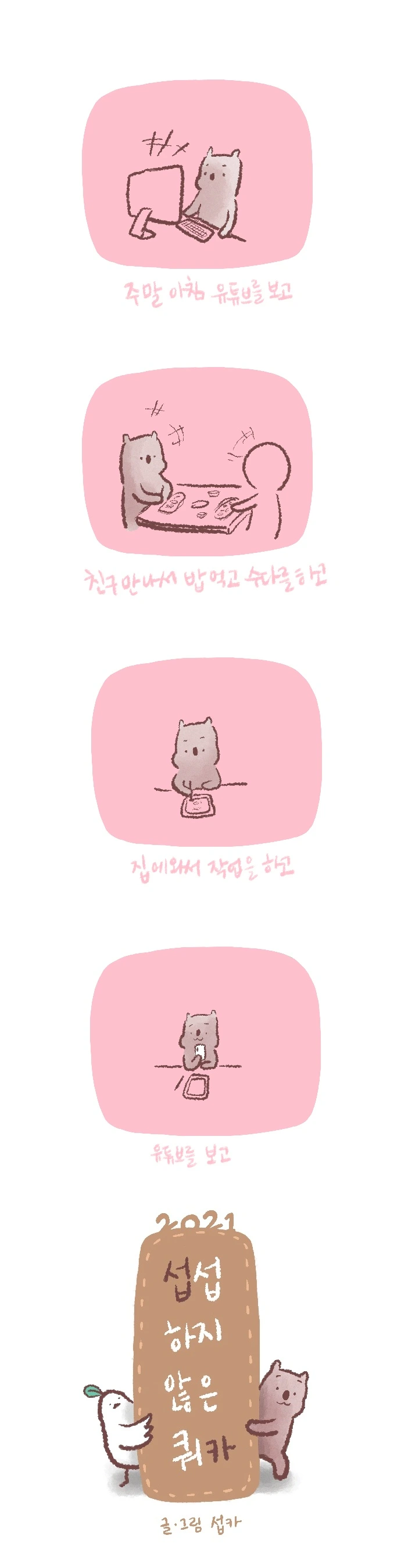 <섭섭하지 않은 쿼카>그림일기 웹툰 작가이자 운동을 좋아하는 일러스트레이터입니다. 따뜻한 그림을 그리고 싶습니다. 작가님의 글에 따뜻함을 더하고 싶으신분들은 제안해주세요.