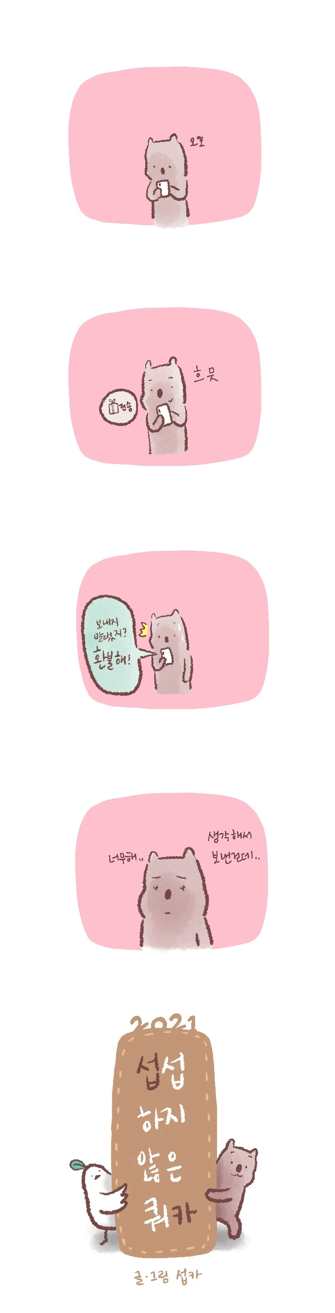 <섭섭하지 않은 쿼카>그림일기 웹툰 작가이자 운동을 좋아하는 일러스트레이터입니다. 따뜻한 그림을 그리고 싶습니다. 작가님의 글에 따뜻함을 더하고 싶으신분들은 제안해주세요.