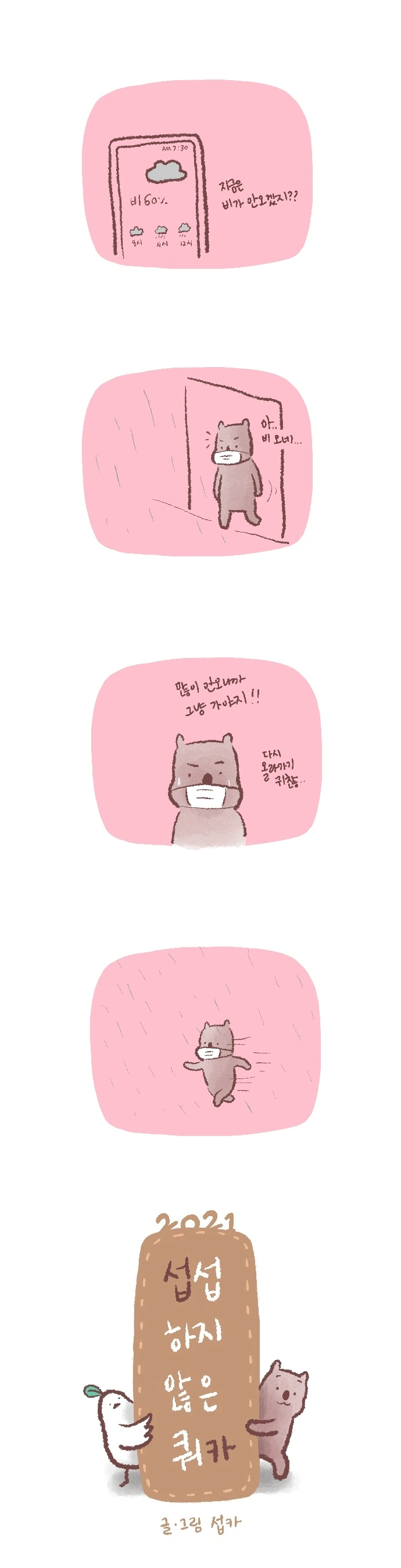 <섭섭하지 않은 쿼카>그림일기 웹툰 작가이자 운동을 좋아하는 일러스트레이터입니다. 따뜻한 그림을 그리고 싶습니다. 작가님의 글에 따뜻함을 더하고 싶으신분들은 제안해주세요.