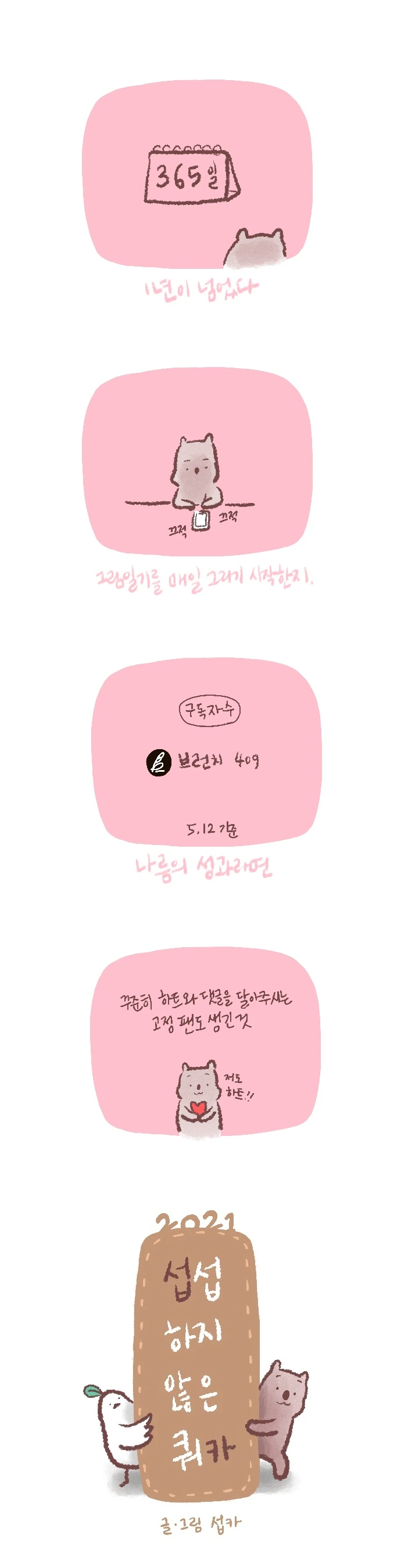 <섭섭하지 않은 쿼카>그림일기 웹툰 작가이자 운동을 좋아하는 일러스트레이터입니다. 따뜻한 그림을 그리고 싶습니다. 작가님의 글에 따뜻함을 더하고 싶으신분들은 제안해주세요.