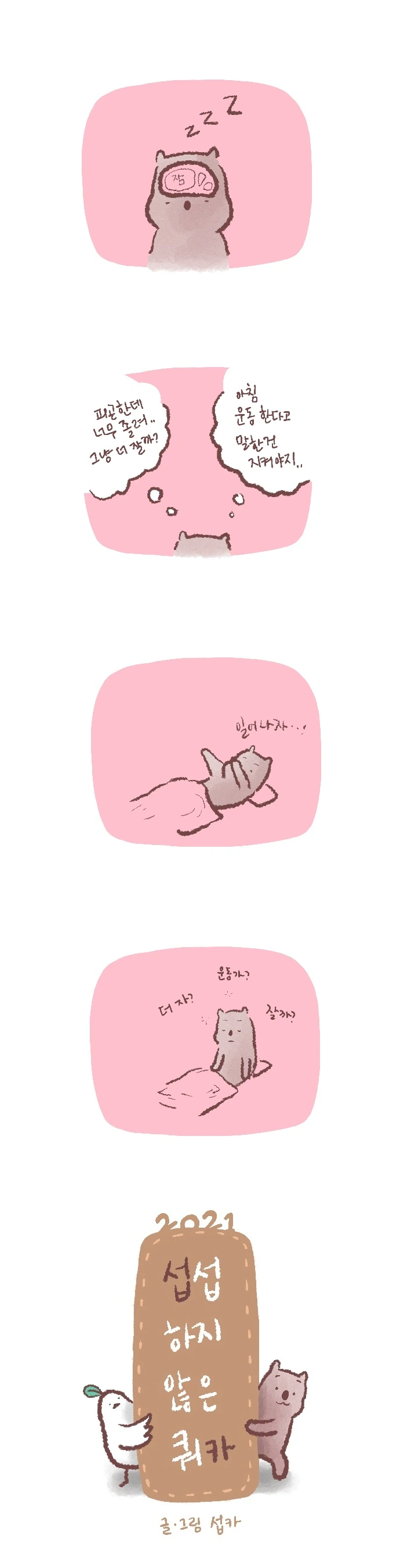 <섭섭하지 않은 쿼카>그림일기 웹툰 작가이자 운동을 좋아하는 일러스트레이터입니다. 따뜻한 그림을 그리고 싶습니다. 작가님의 글에 따뜻함을 더하고 싶으신분들은 제안해주세요.
