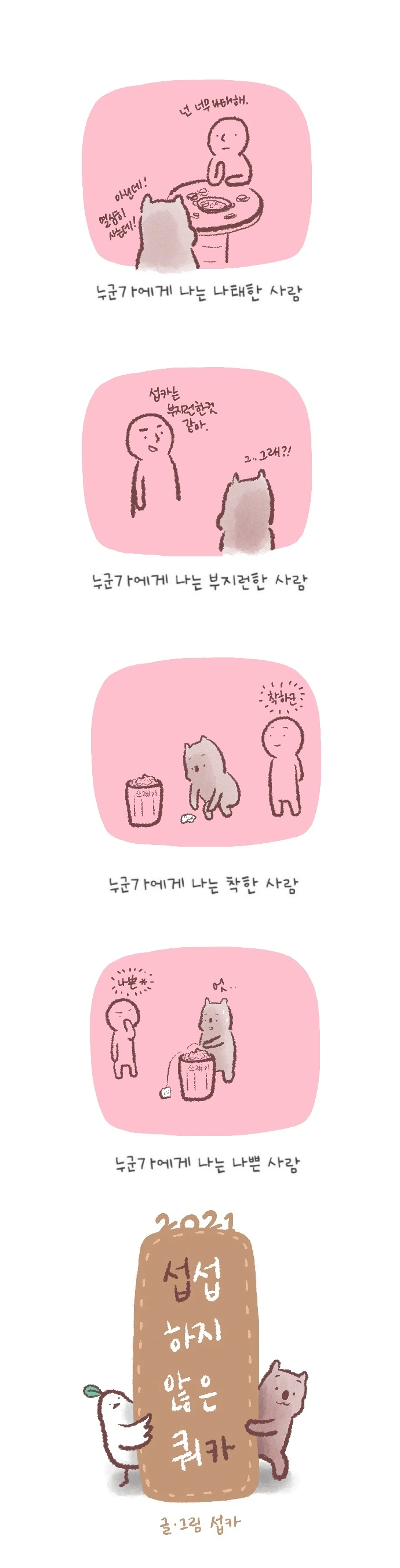 <섭섭하지 않은 쿼카>그림일기 웹툰 작가이자 운동을 좋아하는 일러스트레이터입니다. 따뜻한 그림을 그리고 싶습니다. 작가님의 글에 따뜻함을 더하고 싶으신분들은 제안해주세요.