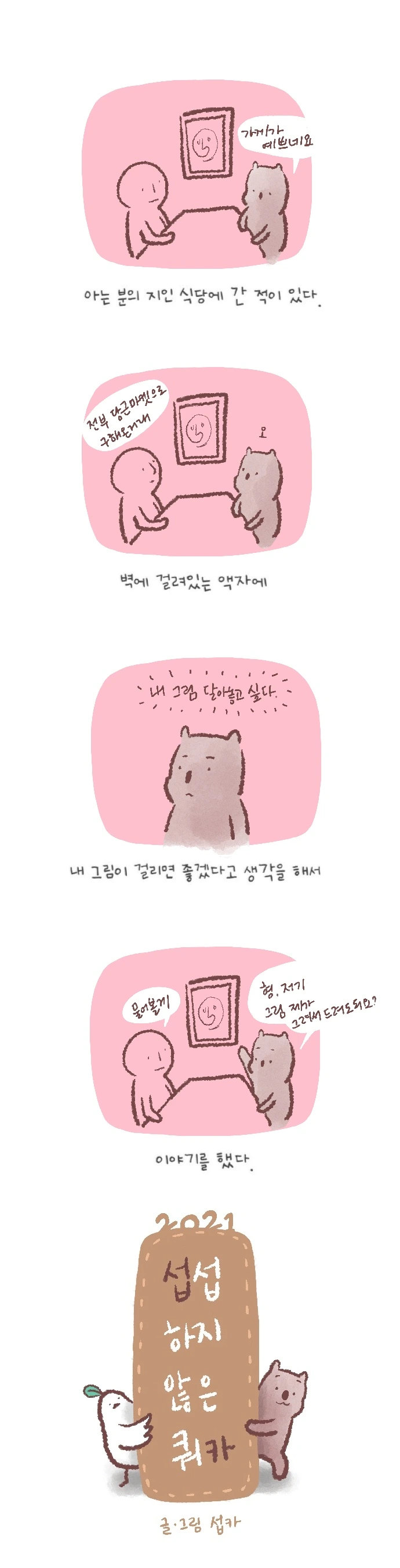 <섭섭하지 않은 쿼카>그림일기 웹툰 작가이자 운동을 좋아하는 일러스트레이터입니다. 따뜻한 그림을 그리고 싶습니다. 작가님의 글에 따뜻함을 더하고 싶으신분들은 제안해주세요.