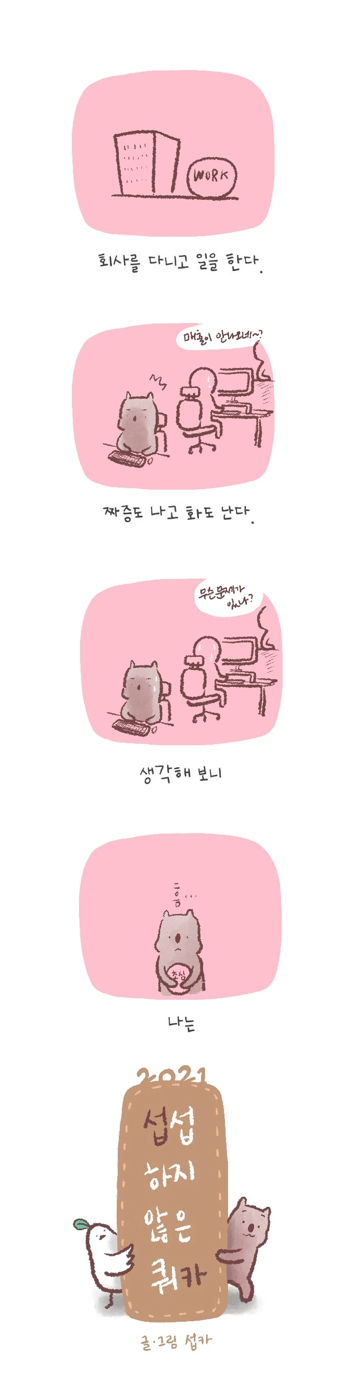 <섭섭하지 않은 쿼카>그림일기 웹툰 작가이자 운동을 좋아하는 일러스트레이터입니다. 따뜻한 그림을 그리고 싶습니다. 작가님의 글에 따뜻함을 더하고 싶으신분들은 제안해주세요.
