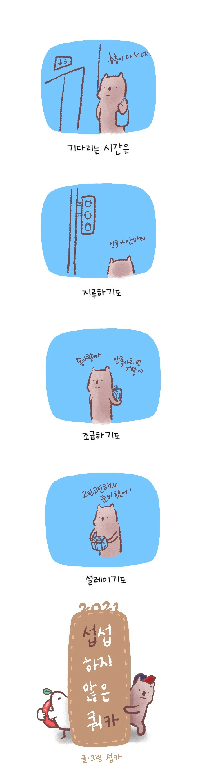<섭섭하지 않은 쿼카>그림일기 웹툰 작가이자 운동을 좋아하는 일러스트레이터입니다. 따뜻한 그림을 그리고 싶습니다. 작가님의 글에 따뜻함을 더하고 싶으신분들은 제안해주세요.