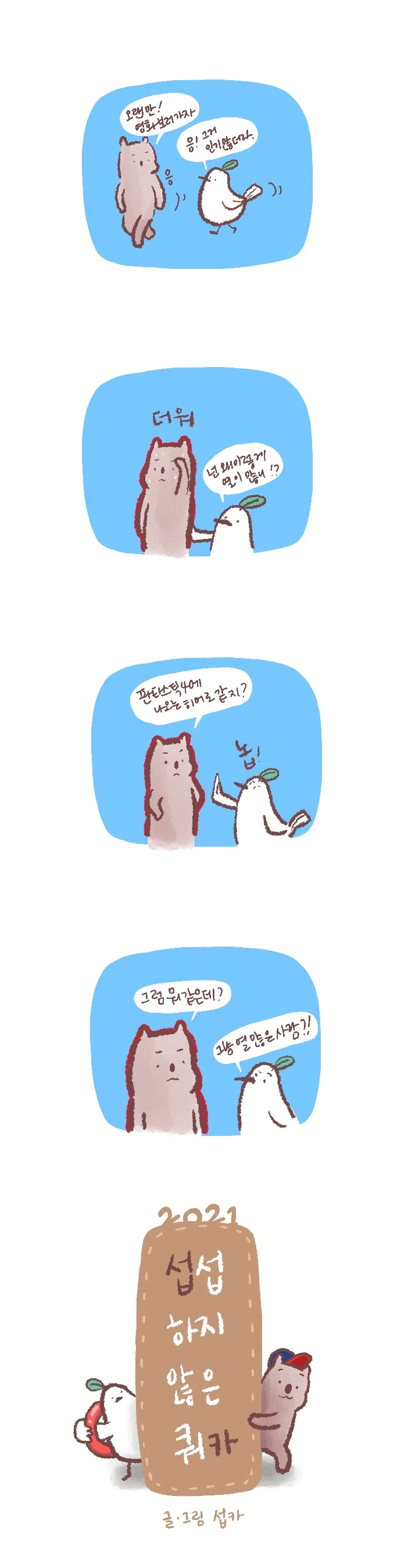 <섭섭하지 않은 쿼카>그림일기 웹툰 작가이자 운동을 좋아하는 일러스트레이터입니다. 따뜻한 그림을 그리고 싶습니다. 작가님의 글에 따뜻함을 더하고 싶으신분들은 제안해주세요.