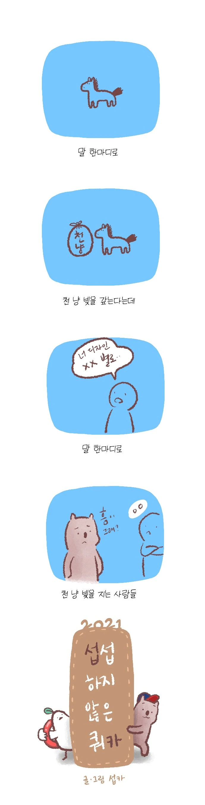 <섭섭하지 않은 쿼카>그림일기 웹툰 작가이자 운동을 좋아하는 일러스트레이터입니다. 따뜻한 그림을 그리고 싶습니다. 작가님의 글에 따뜻함을 더하고 싶으신분들은 제안해주세요.
