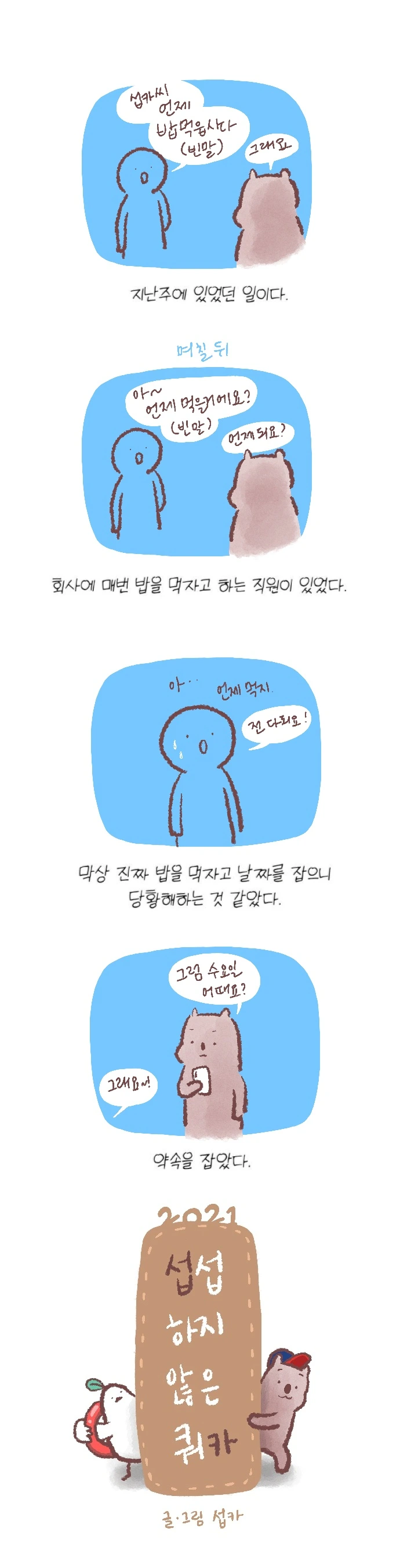 <섭섭하지 않은 쿼카>그림일기 웹툰 작가이자 운동을 좋아하는 일러스트레이터입니다. 따뜻한 그림을 그리고 싶습니다. 작가님의 글에 따뜻함을 더하고 싶으신분들은 제안해주세요.