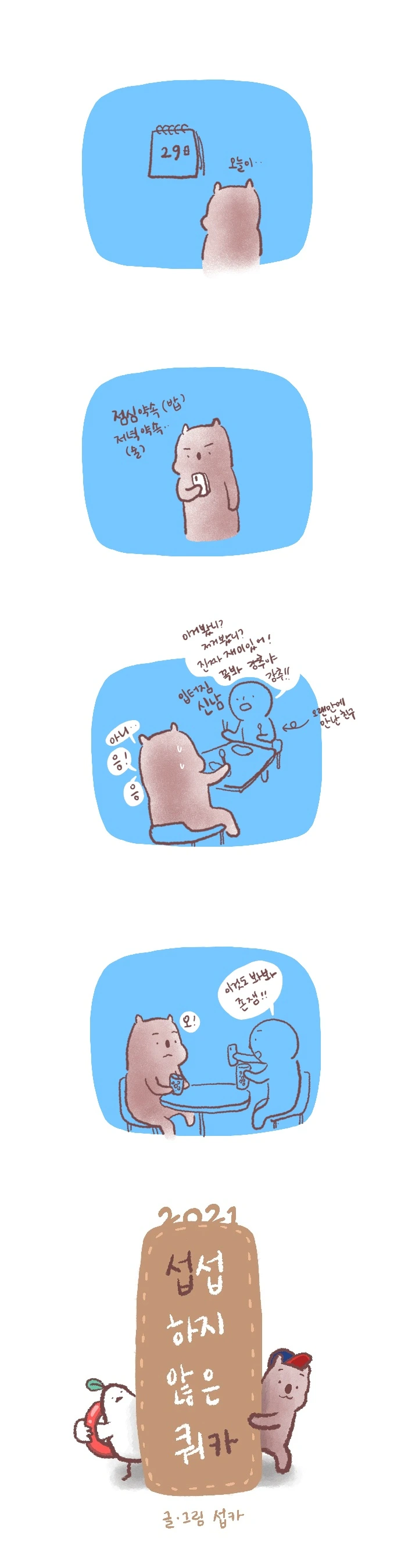 <섭섭하지 않은 쿼카>그림일기 웹툰 작가이자 운동을 좋아하는 일러스트레이터입니다. 따뜻한 그림을 그리고 싶습니다. 작가님의 글에 따뜻함을 더하고 싶으신분들은 제안해주세요.
