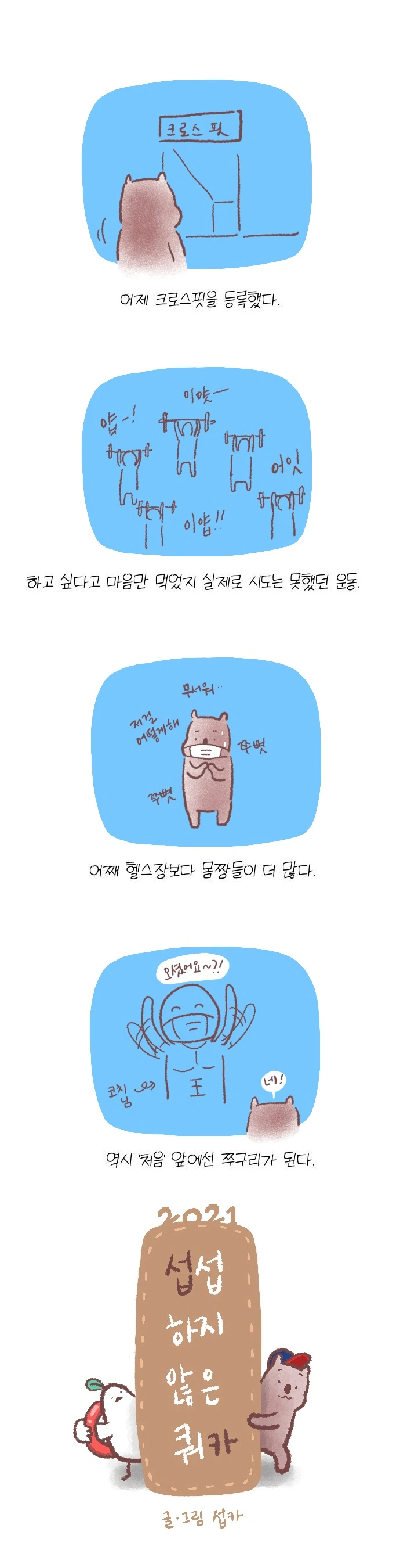 <섭섭하지 않은 쿼카>그림일기 웹툰 작가이자 운동을 좋아하는 일러스트레이터입니다. 따뜻한 그림을 그리고 싶습니다. 작가님의 글에 따뜻함을 더하고 싶으신분들은 제안해주세요.
