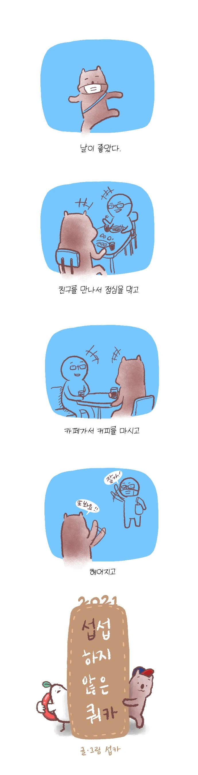 <섭섭하지 않은 쿼카>그림일기 웹툰 작가이자 운동을 좋아하는 일러스트레이터입니다. 따뜻한 그림을 그리고 싶습니다. 작가님의 글에 따뜻함을 더하고 싶으신분들은 제안해주세요.