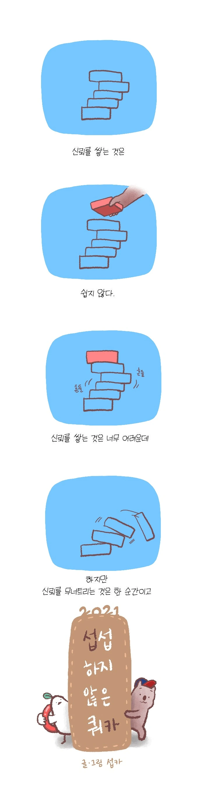 <섭섭하지 않은 쿼카>그림일기 웹툰 작가이자 운동을 좋아하는 일러스트레이터입니다. 따뜻한 그림을 그리고 싶습니다. 작가님의 글에 따뜻함을 더하고 싶으신분들은 제안해주세요.