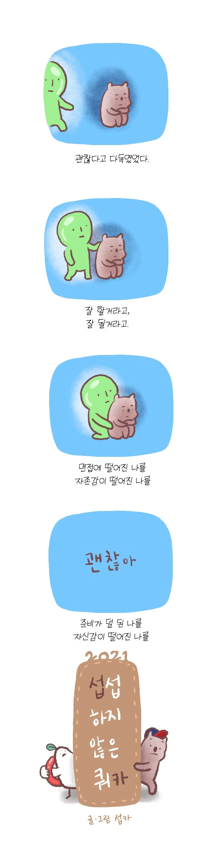 <섭섭하지 않은 쿼카>그림일기 웹툰 작가이자 운동을 좋아하는 일러스트레이터입니다. 따뜻한 그림을 그리고 싶습니다. 작가님의 글에 따뜻함을 더하고 싶으신분들은 제안해주세요.