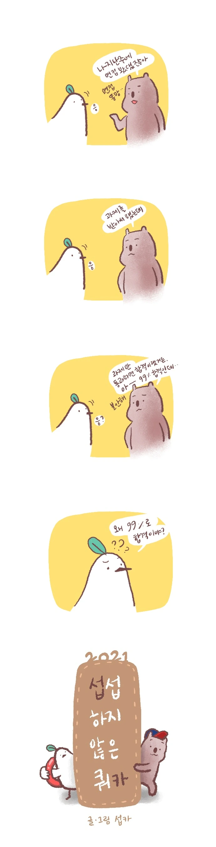 <섭섭하지 않은 쿼카>그림일기 웹툰 작가이자 운동을 좋아하는 일러스트레이터입니다. 따뜻한 그림을 그리고 싶습니다. 작가님의 글에 따뜻함을 더하고 싶으신분들은 제안해주세요.