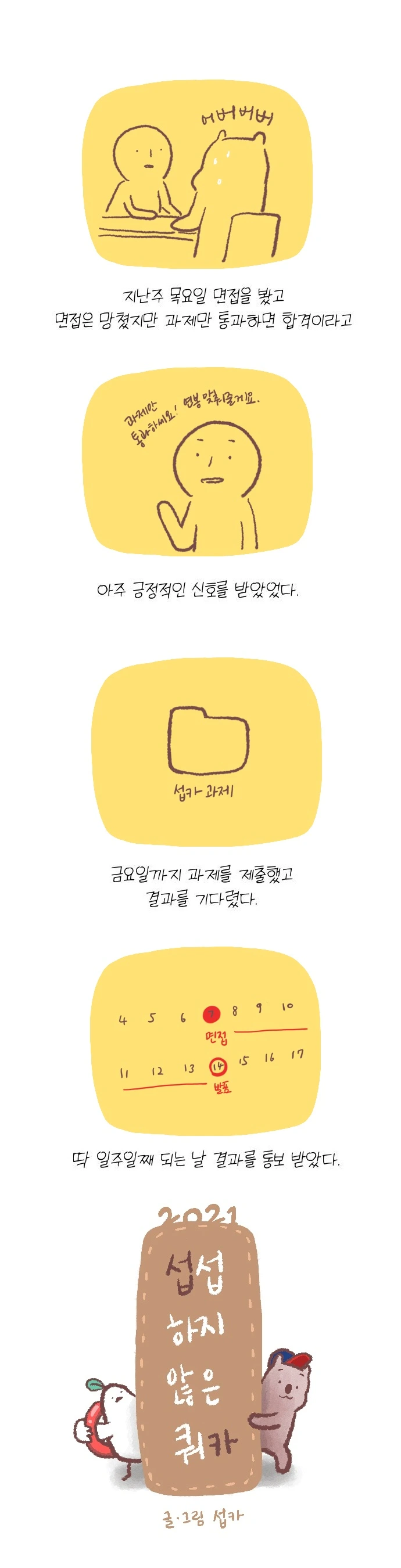 <섭섭하지 않은 쿼카>그림일기 웹툰 작가이자 운동을 좋아하는 일러스트레이터입니다. 따뜻한 그림을 그리고 싶습니다. 작가님의 글에 따뜻함을 더하고 싶으신분들은 제안해주세요.