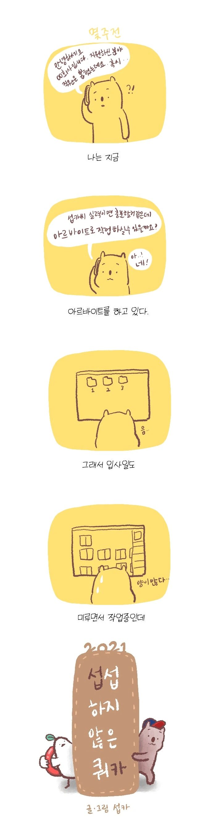 <섭섭하지 않은 쿼카>그림일기 웹툰 작가이자 운동을 좋아하는 일러스트레이터입니다. 따뜻한 그림을 그리고 싶습니다. 작가님의 글에 따뜻함을 더하고 싶으신분들은 제안해주세요.