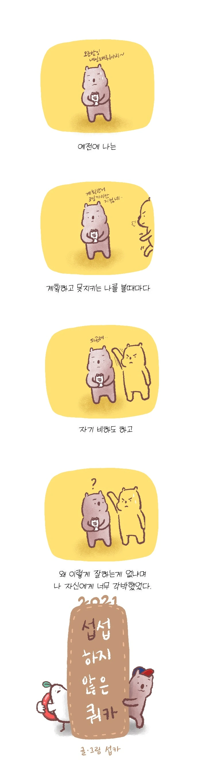 <섭섭하지 않은 쿼카>그림일기 웹툰 작가이자 운동을 좋아하는 일러스트레이터입니다. 따뜻한 그림을 그리고 싶습니다. 작가님의 글에 따뜻함을 더하고 싶으신분들은 제안해주세요.