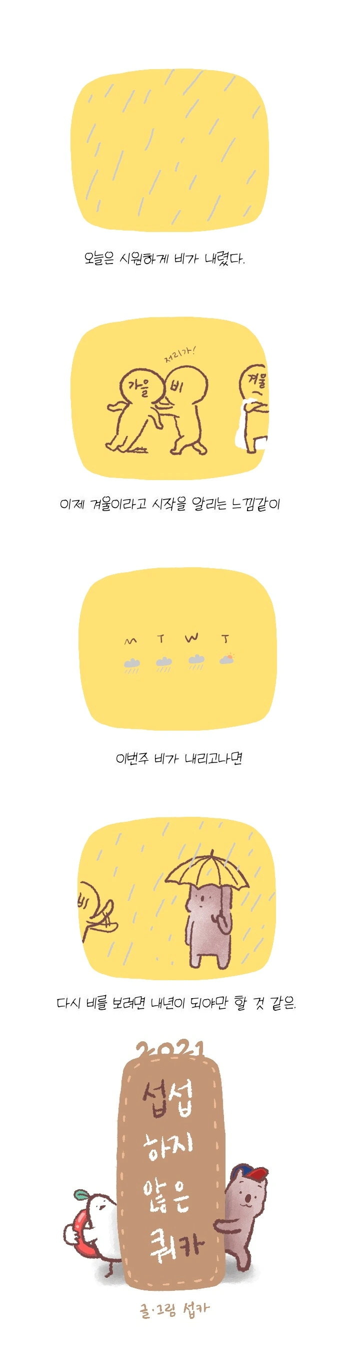 <섭섭하지 않은 쿼카>그림일기 웹툰 작가이자 운동을 좋아하는 일러스트레이터입니다. 따뜻한 그림을 그리고 싶습니다. 작가님의 글에 따뜻함을 더하고 싶으신분들은 제안해주세요.
