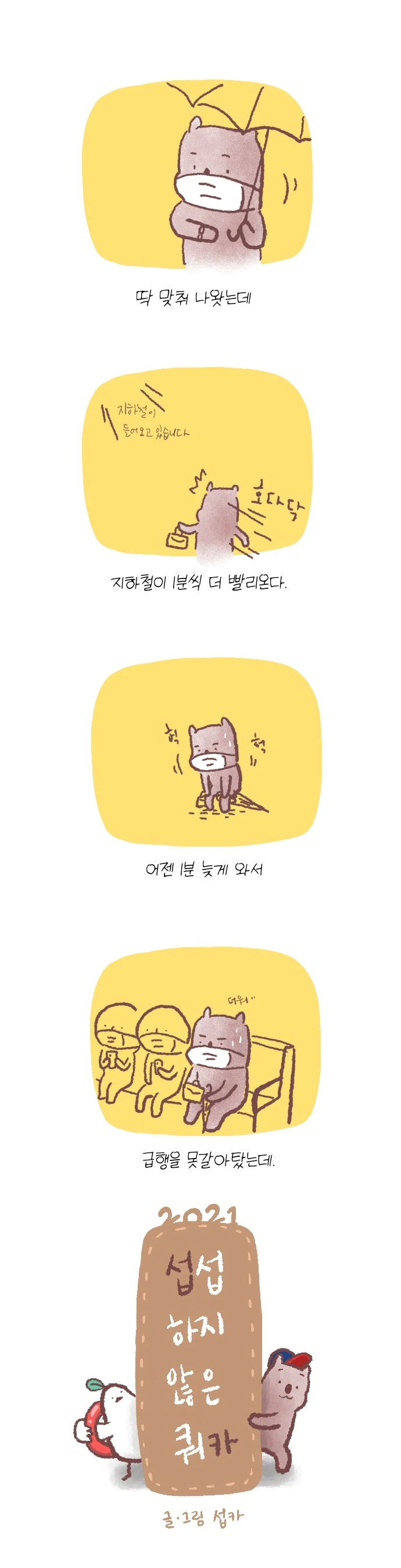 <섭섭하지 않은 쿼카>그림일기 웹툰 작가이자 운동을 좋아하는 일러스트레이터입니다. 따뜻한 그림을 그리고 싶습니다. 작가님의 글에 따뜻함을 더하고 싶으신분들은 제안해주세요.